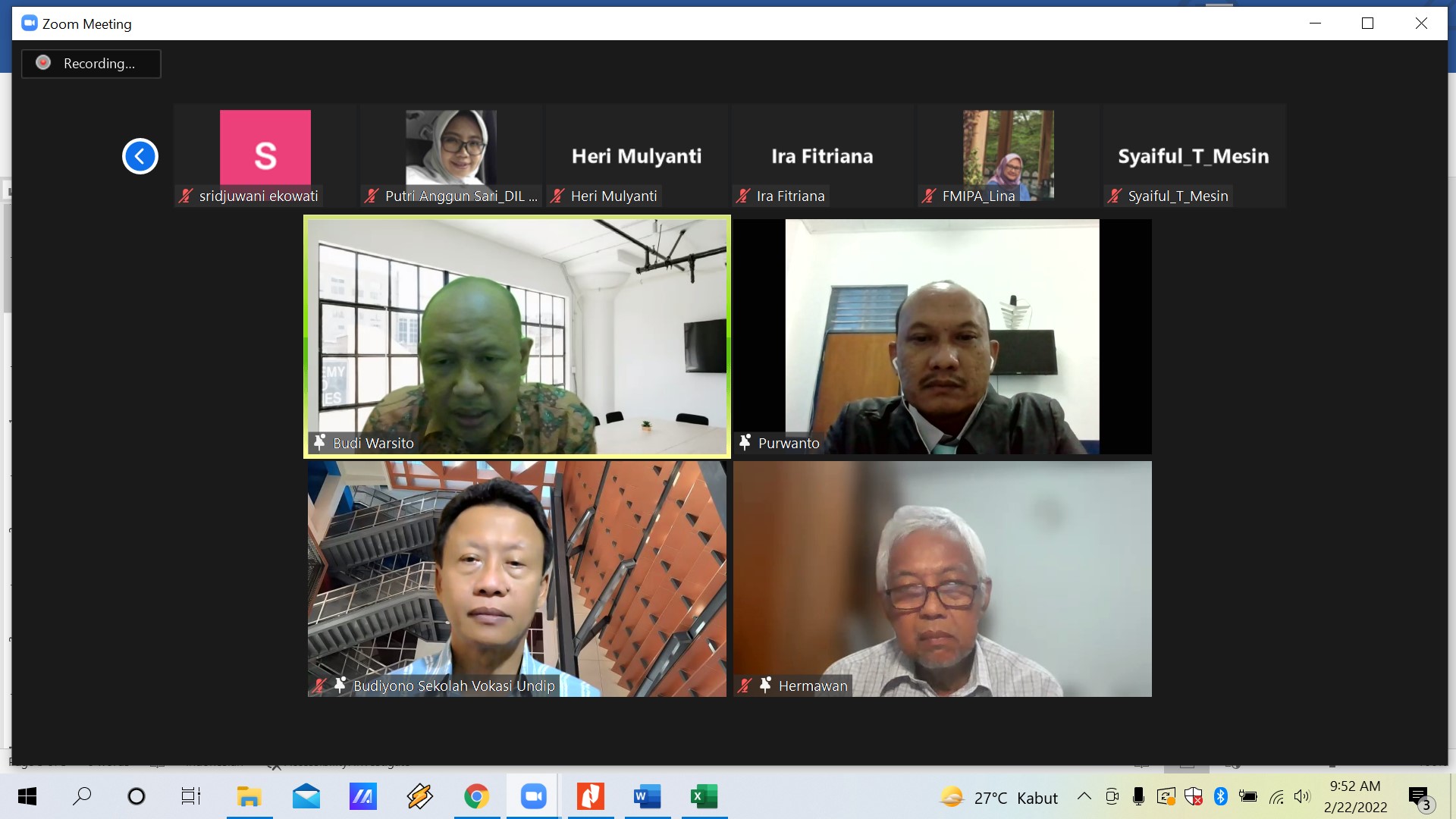 The Seminar on the Results of Dissertation Research of students of Purwanto has been held on February 22, 2022 at 08.00 – 10.00 WIB online via zoom meeting. The composition of the Proposal Seminar Examiner Team is as following: