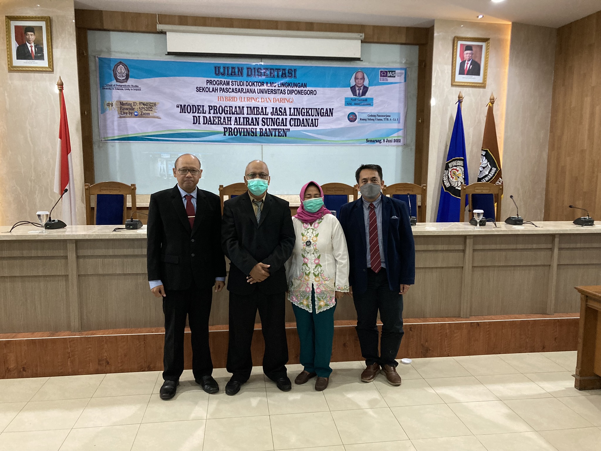 The Dissertation Defence of students by Nedi Sunaedi has been held on June 8, 2022 at 13.00 WIB in a hybrid manner in Room 410 of Building B, 4th floor of the Postgraduate School and zoom meeting media. The composition of the Proposal Seminar Examiner Team is as following: