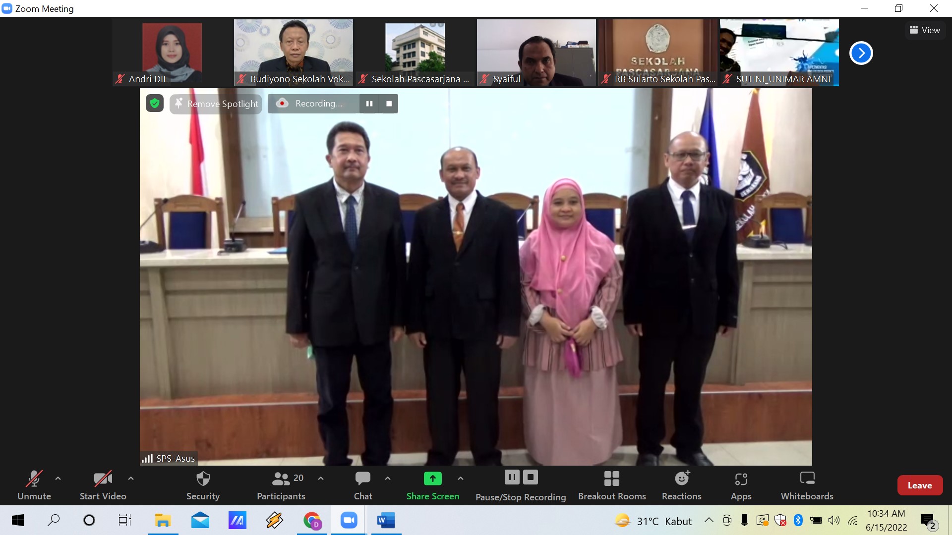 The Dissertation Defence of students by Purwanto has been held on June 14, 2022 at 13.00 WIB online via zoom meeting. The composition of the Proposal Seminar Examiner Team is as following: