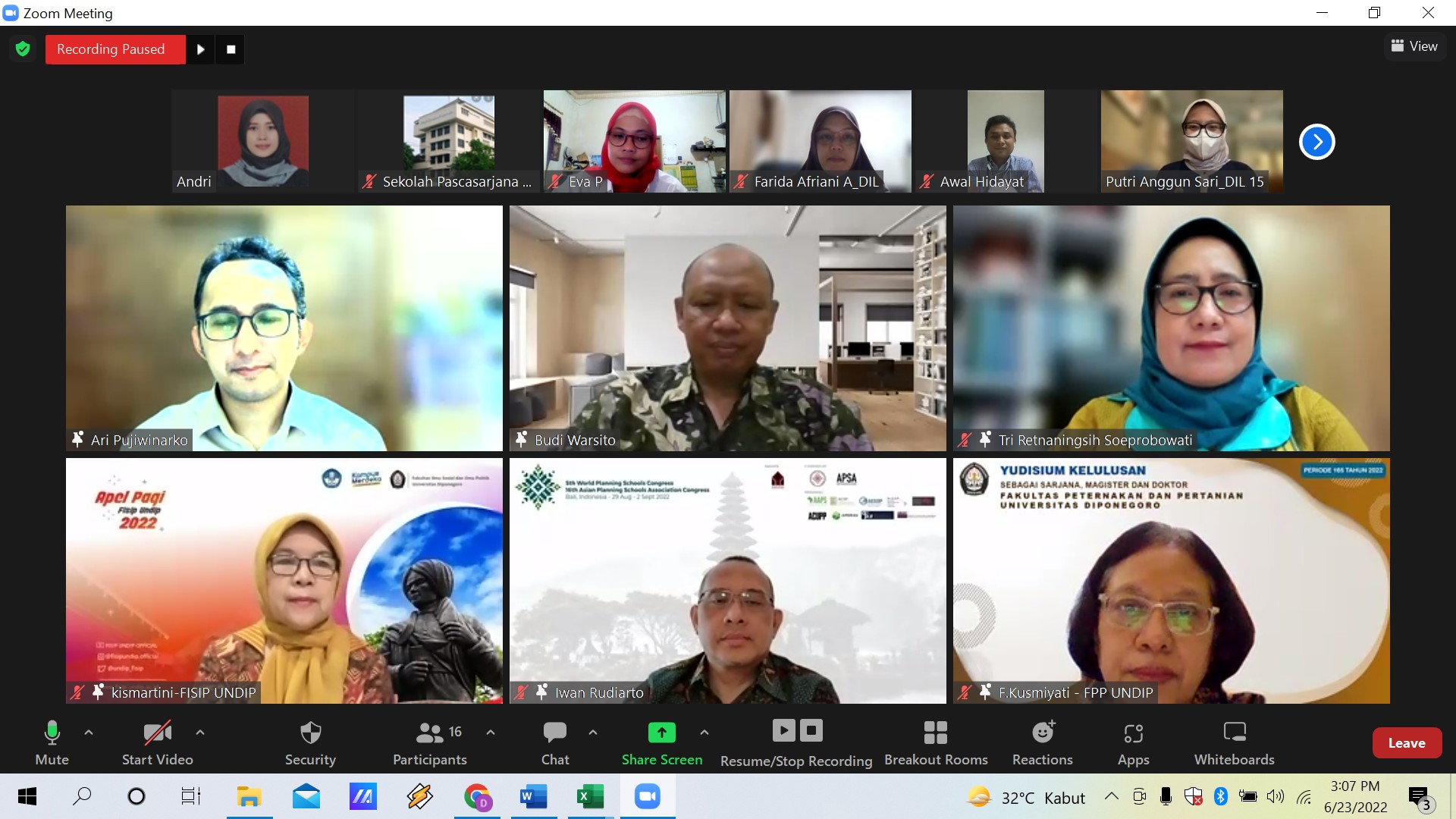 The Dissertation Proposal Seminar of students by Ari Pujiwinarko has been held on June 23, 2022 at 13.00 – 15.00 WIB online via zoom meeting. The composition of the Proposal Seminar Examiner Team is as following: