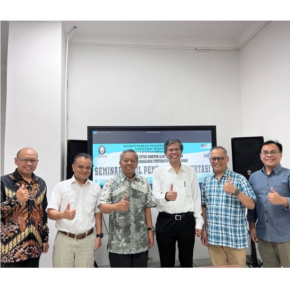 Today, Seminar of Dissertation Research Result Samsul Ma’rif is held in Doctoral Program of Environmental Science. The title of dissertation entitled “Penerapan Fiskal Keruangan dalam Kerangka Pengembangan Wilayah Pulau Kecil Perbatasan yang Berkelanjutan di Kabupaten Kepulauan Anambas Provinsi Kepulauan Riau.”The composition of Examiner Team is as following: Promoter : Prof. Sudharto P. Hadi, MES, Ph.D. […]