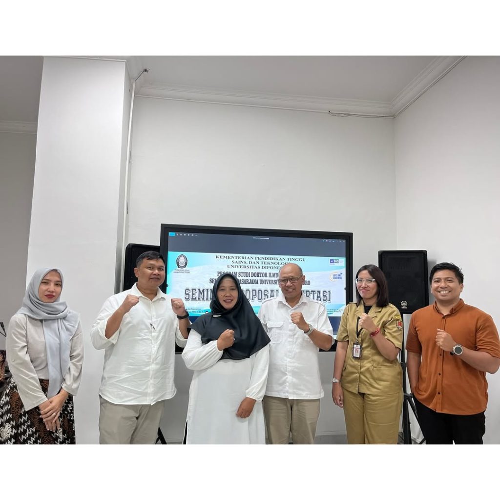 Today, Seminar of Dissertation Proposal Farikhah Elida is held in Doctoral Program of Environmental Science. The title of dissertation entitled “Strategi Rehabilitasi Kawasan Mangrove Berbasis Daya Dukung Ekosistem di Kawasan Pesisir Mlonggo Kabupaten Jepara.” The composition of Examiner Team is as following: Promoter : Prof. Dr. Ir. Sutrisno Anggoro, M.S. Co Promoter : Prof. Drs. […]